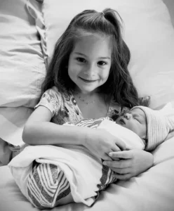The images captured precious moments from Wolf’s birth – including intimate solo shots with their newborn, as well as a heartwarming photo of the couple’s 4-year-old daughter, Nakano Oceana, gently cradling her new baby brother.
